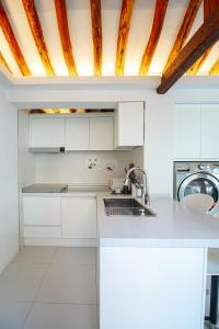 La cuisine entièrement équipée met à disposition réfrigérateur, micro-ondes, grille-pain, cafetière, bouilloire électrique et ustensiles nécessaires pour préparer les repas servis autour d’une table conviviale. Parmi les équipements supplémentaires figurent une télévision écran plat avec chaînes câblées, machine à laver, matériel pour repasser (fer et étendoir), bureau de travail ainsi qu’une armoire-penderie avec linge de toilette fourni dans la pièce dédiée au dressing.