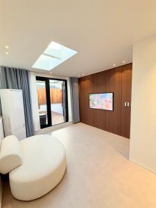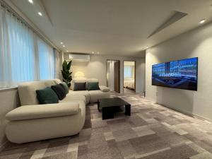 Each air-conditioned apartment offers a private entrance, fully equipped kitchen with stovetop, refrigerator, microwave, and kitchenware. Rooms provide soundproofing along with washing machines, seating areas and flat-screen TVs featuring streaming services. Bathrooms include private facilities with showers or bidets alongside complimentary toiletries like shampoo, conditioner, slippers and body soap.