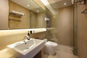 The hotel was situated in a great location, close to night markets, shopping centers, and public transport. The room was spacious with a comfortable bed and modern bathroom. Breakfast was served a-la-carte and included vouchers for free coffee. The hotel remained quiet despite its central position near busy streets. Many restaurants were easily accessible within walking distance.