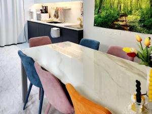 Accommodation comprises two bedrooms with two beds, along with two bathrooms equipped with showers and hairdryers. The fully equipped kitchen includes a stovetop, refrigerator, microwave, toaster, electric kettle, kitchenware, tea and coffee making facilities as well as a dining table. Additional in-room amenities feature a washing machine, bed linen, heating system with non-feather pillows for comfort, towels provided for guests’ convenience and sofa seating.