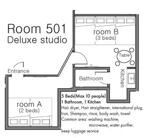 The property is set 700 metres from Hongik University, only 800 metres from Hongik University Station, and lies within 3.5 km of Ewha Womans University. Seoul Station is situated 5.6 km away while Yeongdeungpo Station can be reached within 6.2 km. Gimpo International Airport is located at a distance of 12 km.
