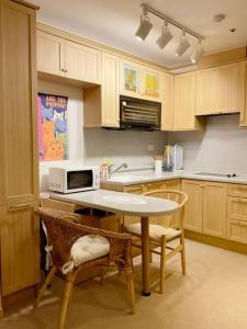 Inside the apartment, guests will find a separate bedroom and living room complemented by soundproofed walls for added comfort. The bathroom features a walk-in shower with complimentary toiletries including shampoo, conditioner, body soap, slippers, hairdryer, and additional toilet facilities. The fully equipped kitchen boasts a stovetop, refrigerator, microwave, coffee machine as well as tea and coffee making facilities alongside complete kitchenware.