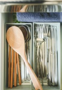 The accommodation features a well-equipped kitchen including a microwave, refrigerator, electric kettle, full kitchen facilities, kitchenware, kitchenette area as well as a dining table for meals together. The room offers individually controlled air conditioning and heating alongside amenities such as an iron with ironing board plus a washing machine and tumble dryer for laundry needs.