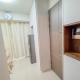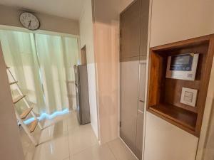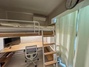 Inside the apartment, guests will find a fully equipped kitchen including a stovetop, refrigerator, microwave, electric kettle, and kitchenette setup ideal for meal preparation. The air-conditioned room contains one bed along with soundproofed walls for privacy, a seating area with flat-screen TV, washing machine, work desk, wardrobe/closet and individually controlled heating and air conditioning.