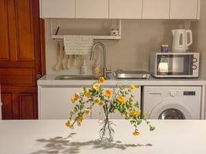 Die Unterkunft umfasst ein Schlafzimmer mit individuell regulierbarer Klimaanlage und Heizung sowie zwei Betten für erholsame Aufenthalte. Gäste finden eine ausgestattete Küche mit Kühlschrank, Esstisch und Wasserkocher vor sowie Waschmöglichkeiten inklusive Waschmaschine und Wäschetrockengestell. Das Badezimmer ist ausgestattet mit Badewanne oder Dusche, privater Toilette sowie Shampoo, Conditioner, Duschgel und Haartrockner.