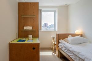 Cleanliness and convenience were notable features of the Mangrove Hotel, with spotless rooms and well-maintained facilities. The location near Dongdaemun History Park Station provided easy access to multiple subway lines and an airport limousine bus stop. Shared amenities included a kitchen, laundry area, rooftop, café, mini gym, and a quiet workstation ideal for productivity. Access was managed via mobile phone with QR codes for common areas. The property also featured lifts and ample storage space in rooms.