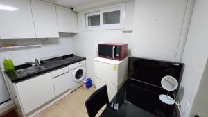 The apartment was spacious and sparkling clean, located near Myeongdong station and market. The location required a short walk uphill but remained convenient for public transportation and nearby attractions. Staff were exceptionally friendly, helpful, and accommodating, even assisting with late check-ins and transportation during rain. The room offered lovely views over the area.