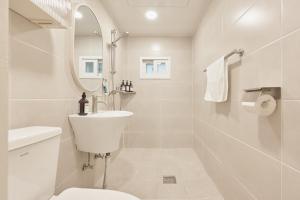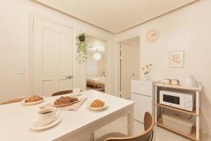 Located in Seoul, New, Hongdae & Mangwon Market, Han River Park, 2BR 3QB, 3min to subway station is an apartment offering a private entrance and air conditioning. This single-room property features two bedrooms with three beds and provides views of a quiet street.