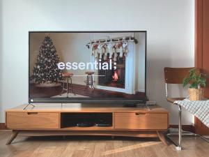The apartment features three bedrooms and two bathrooms equipped with bathtubs, showers, slippers, hairdryers, shampoo, conditioner, body soap as well as complimentary toiletries. The living space includes two living rooms furnished with sofas and flat-screen TVs offering streaming services.
