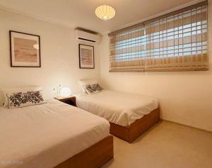 Die Unterkunft verfügt über zwei Schlafzimmer mit insgesamt drei Betten sowie eine klimatisierte Umgebung mit individuell regulierbarer Temperatur für zusätzlichen Komfort und Heizung. Die Küche ist komplett ausgestattet mit Herdplatte, Kühlschrank, Mikrowelle, Kochgeschirr, Esstisch und elektrischem Wasserkocher zur vollständigen Versorgung bei der Zubereitung von Speisen. Das Badezimmer bietet Hausschuhe sowie grundlegende Ausstattung wie Haartrockner, Shampoo, Conditioner, Duschgel sowie Badewanne oder Dusche als Wahlmöglichkeit. Weitere Ausstattungsmerkmale im Zimmer umfassen synthetische Kopfkissen ohne Federn, vor Ort bereitgestellte Handtücher und einen Wäscheständer.